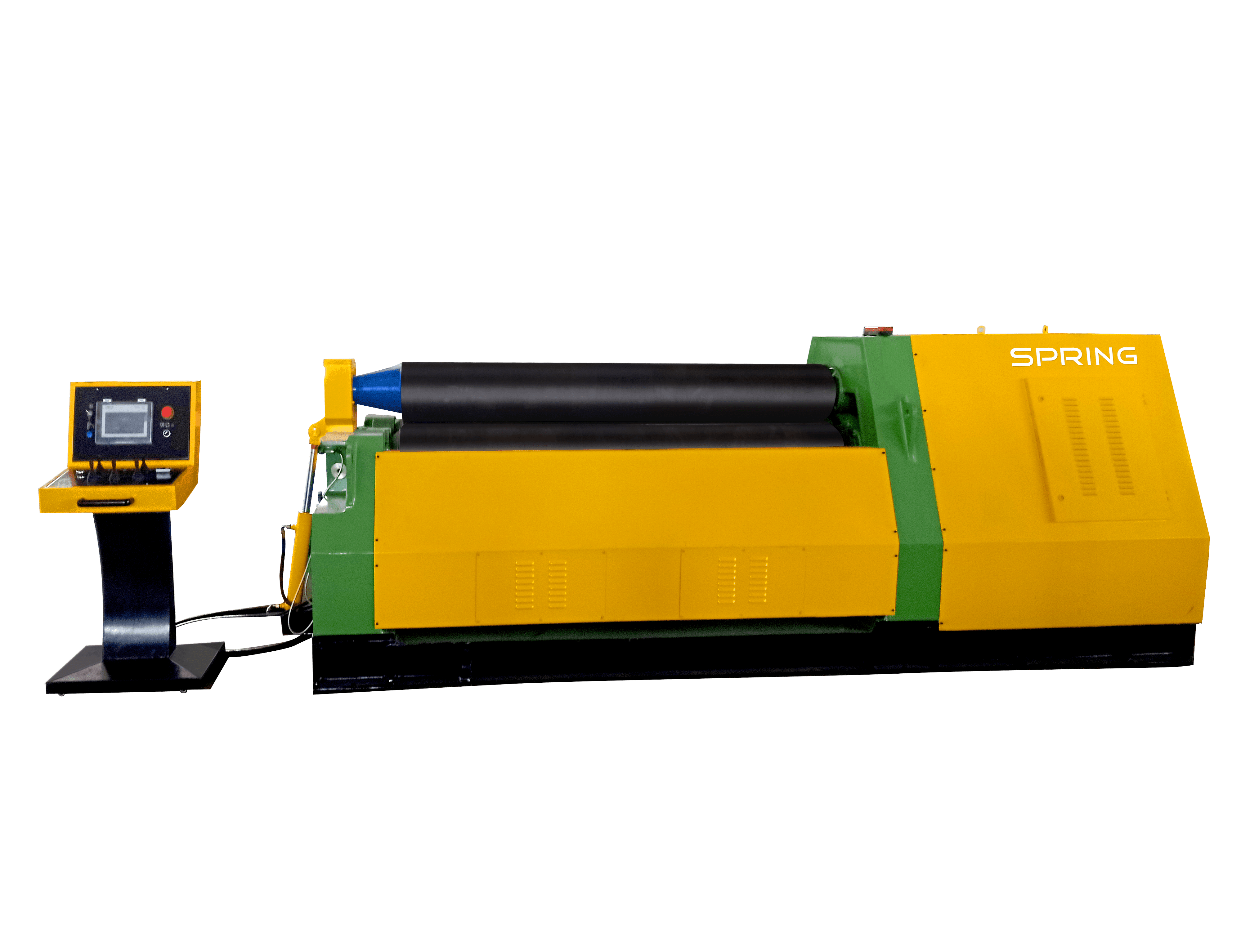 SPRING W12 CNC four-roller plate rolling machine has the function of pre-bending at the end of the plate, which can feed the metal plate at one time and complete the pre-bending at the end of the plate and the rolled shape of the workpiece without adjusting the head. The upper working roller of the machine is the main driving roller, the lifting and lowering of the lower roller and both side rollers adopt hydraulic transmission, the lifting and lowering displacement is controlled by computer, automatic leveling, screen display, the dumping and resetting of the overturning bearing body adopts hydraulic transmission, and the tail of the upper roller is equipped with a balancing mechanism, so that it can be convenient to unload the rolled up workpieces and cylinders. It is equipped with mobile independent operation table, which can be moved and operated at any time, and the machine is equipped with safety interlocking device, which is of high technical level, full-featured, high-precision and easy to operate. It is the ideal model for rolling round, arc and cone-shaped workpieces in energy, transportation, petroleum, chemical, boiler, shipbuilding, hydropower, metal structure and other industries.